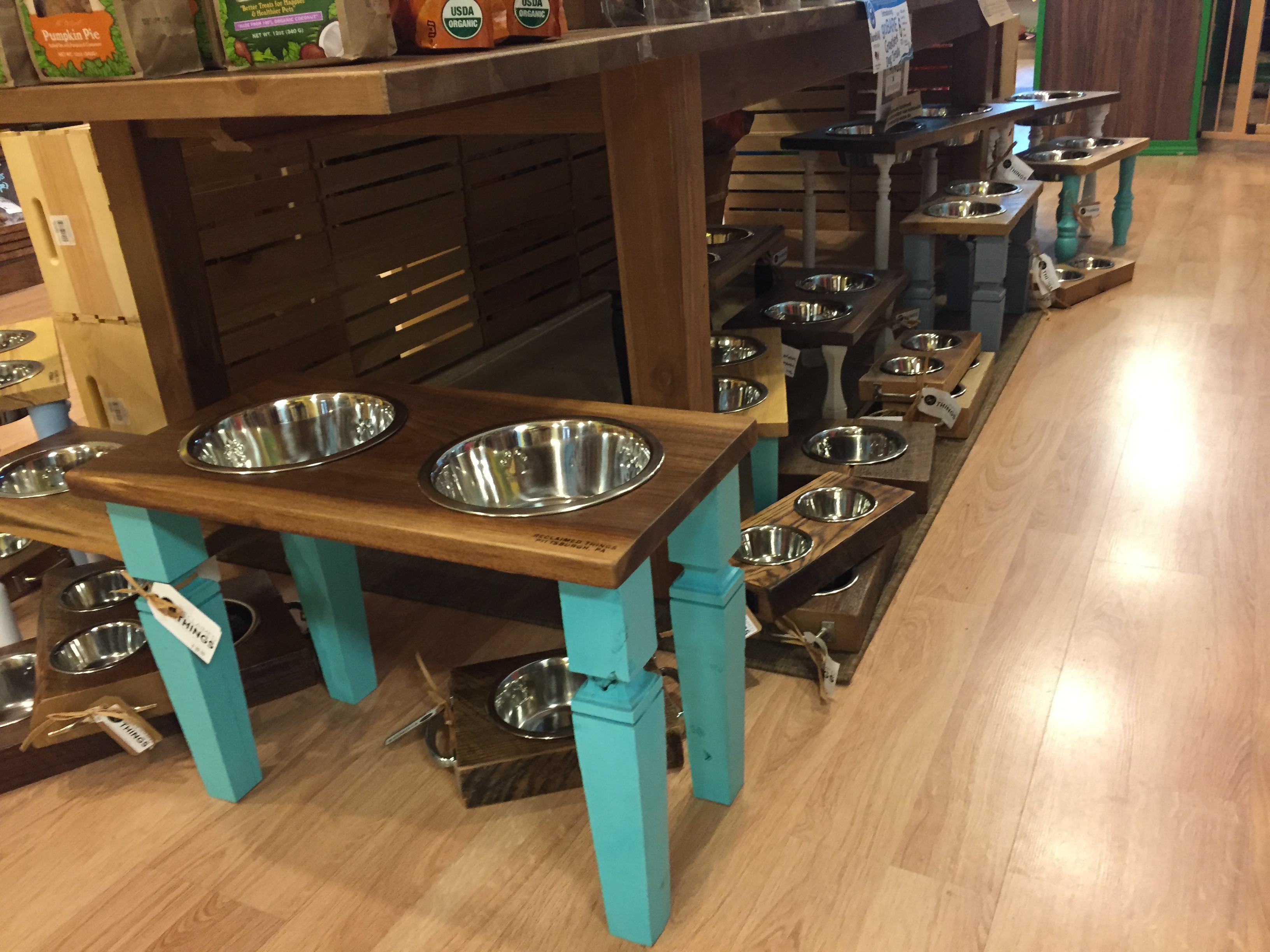 Looking for a new feeding dish? They have a vareity of sizes, colors & to choose from. My favorite was the beCoBowl, they are made from natural bamboo and are durable for those animals who love to chew their bowls. They also have cool ceramic bowls that have been handmade and painted. Looking for a holder for the bowls? They also have handmade bench style feeding stations at all different heights for different size animals.